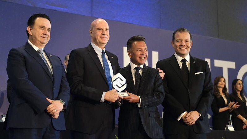 Lemus Navarro también entregó el premio Trascendencia Empresarial “Carlos Gutiérrez Nieto”, a Luis Aranguren Tréllez, Presidente Ejecutivo y CEO de Grupo Arancia, un corporativo que conjunta empresas líderes en el suministro de alimentos y productos de cuidado personal, con alcance nacional e internacional.